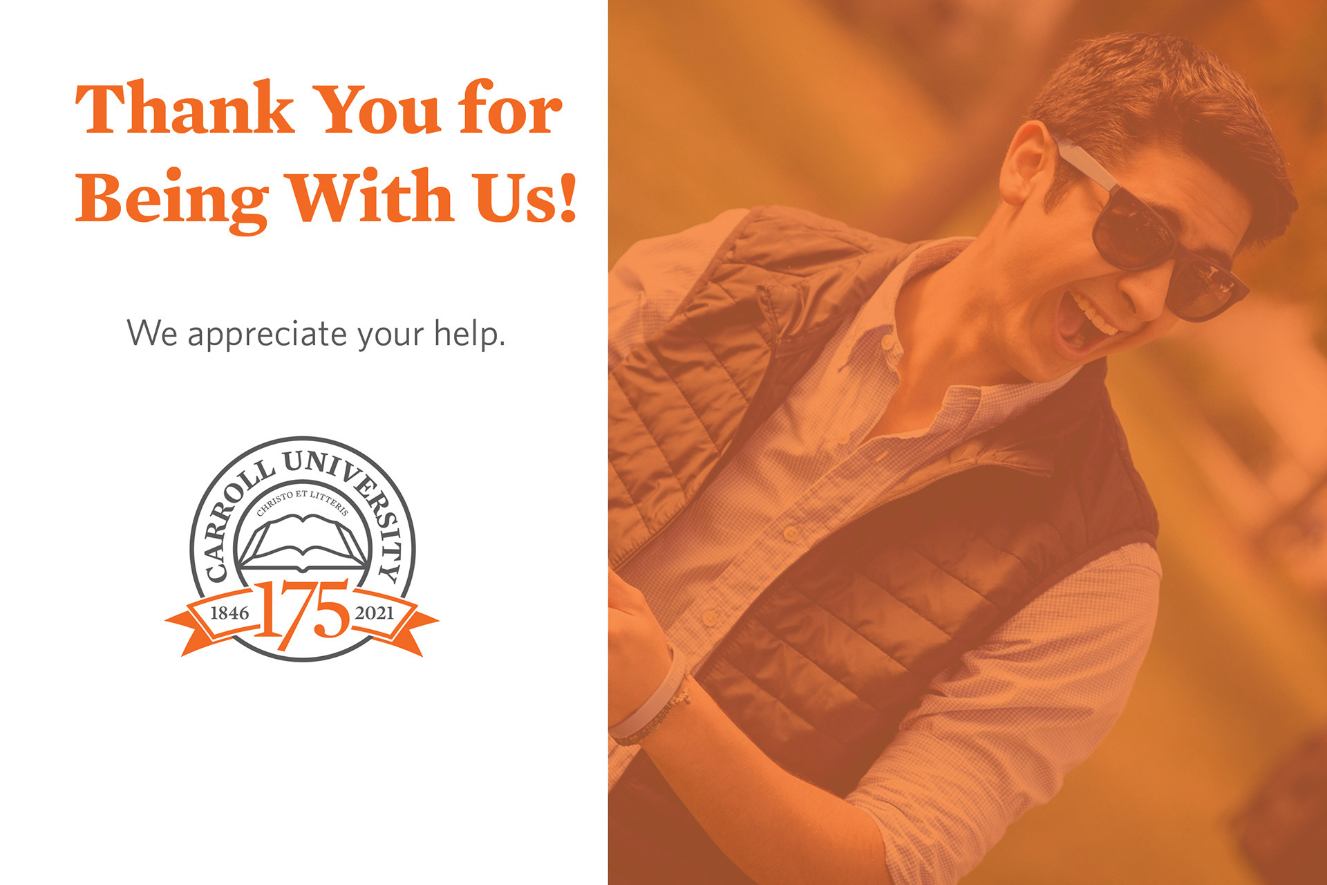 These Lucidpress postcard templates were designed for Carroll University to utilize as postcards. The postcards were highlighting how thankful Carroll is for the community's ongoing support. I designed a few card options to be utilized on rotation.